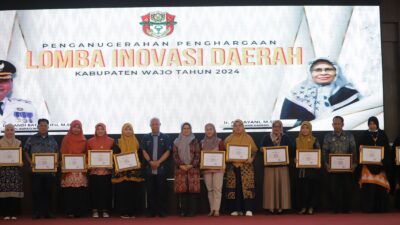 WAJO LINTAS JURNAL TIPIKOR ONLINE- Pemerintah Kabupaten Wajo sukses menyelengga rakan acara penganugerahan Kompe tisi Inovasi Daerah 2024, yang dirang kaikan dengan launching 12 aksi perubahan dari peserta Pelatihan Kepemimpinan Administrator (PKA) Angkatan 1 tahun 2024.