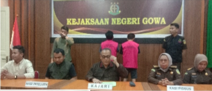 Kejaksaan Negeri Gowa melakukan Konferensi pers penetapan dua tersangka kasus dugaan korupsi salah satu proyek di dinas pekerjaan Umum Tata Ruang (PUPR) Provinsi Sulawesi selatan yakni Proyek rehabilitasi jaringan irigasi bendungan Bili-Bili dengan anggaran 7,933.000.000.-.Kamis malam (22/07/2024) Menjelang pukul 00 WITA,
