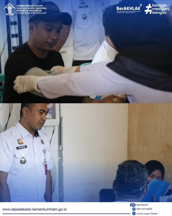 Sesuai dengan tema Hari Pengayoman ke-79, Kementerian Hukum dan HAM Mengabdi Untuk Negeri Menuju Indonesia Emas 2045, Lapas Takalar memberikan layanan kesehatan bagi warga binaan dan petugas demi memastikan kualitas kesehatan mereka.