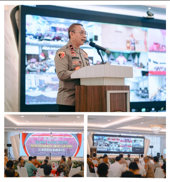 Kapolda Bengkulu Brigjen Pol Anwar, S.I.K., M.Si., memimpin Rapat Koordinasi Lintas Sektoral, Hari ini Kamis(08/08/2024) di Aula Rupattama Awaloedin Djamin Polda Bengkulu dan dihadiri oleh PJU Polda Bengkulu, Danrem 041/Gamas Bengkulu yang diwakilkan oleh Kasi Ops, Forkopimda, BPBD, KPU Provinsi, Dandenpom Bengkulu, Danlanal Bengkulu, Kabinda, Kajati Bengkulu, Pengadilan Tinggi Bengkulu, Pengadilan Tinggi Agama Prov. Bengkulu, Dishub, Kominfo, Bawaslu, Parpol, Basarnar, BMKG, Dinkes Provinsi, Toga,Tomas, Todat, Awak Media serta Polres Jajaran mengikuti secara Zoom Meeting. Rapat ini bertujuan untuk memastikan kesiapan pengamanan dan penyelenggaraan Pemilihan Kepala Daerah (Pilkada) 2024 di wilayah hukum Polda Bengkulu.