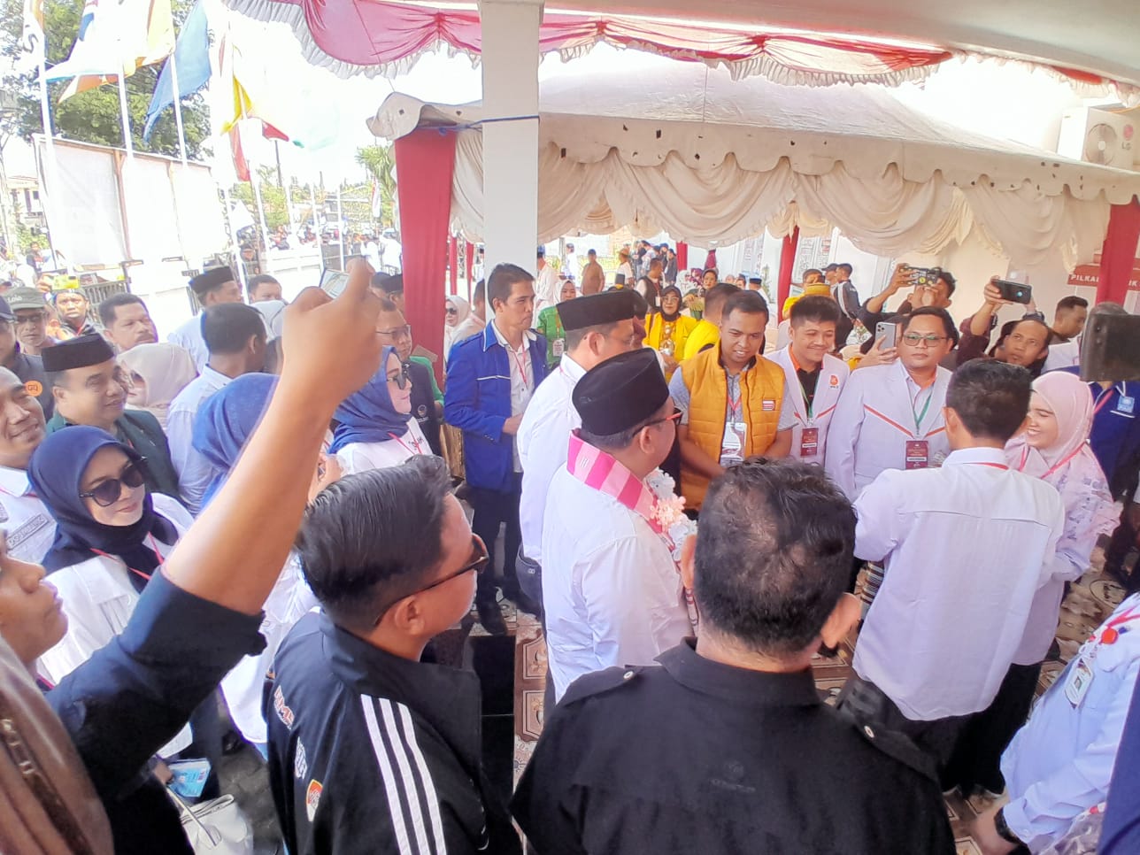 “Siang ini, kami telah menerima berkas paslon Bupati dan Wakil Bupati H.Mohammad Firdaus Daeng Manye dan H.Hengky Yasin “Ucap Ibrahim Salim.
