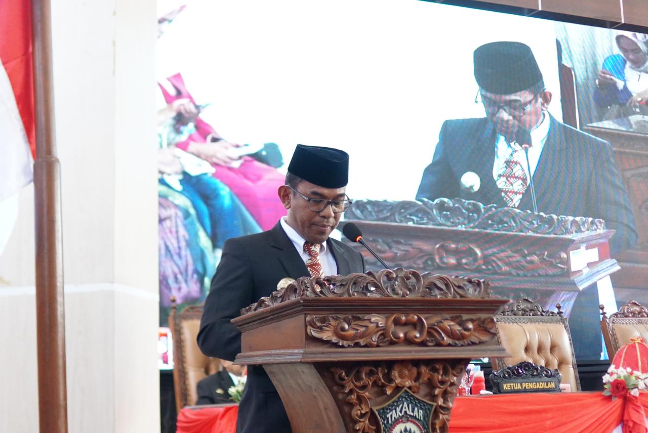 Pj. Bupati Takalar Dr. Setiawan Aswad, M.Dev,.Plg dalam membacakan sambutan Menteri Dalam Negeri RI mengatakan bahwa Rapat Paripurna dengan agenda khusus Pengucapan Sumpah/Janji anggota DPRD Kab/Kota hasil Pemulihan Umum Tahun 2024 merupakan puncak dari seluruh rangkaian proses pelaksanaan Pemilihan Umum Anggota DPRD, yang secara filosofi berkedudukan sebagai sarana demokrasi yang dimaksudkan untuk melaksanakan kedaulatan rakyat dalam tatanan pemerintahan Negara Kesatuan Republik Indonesia.