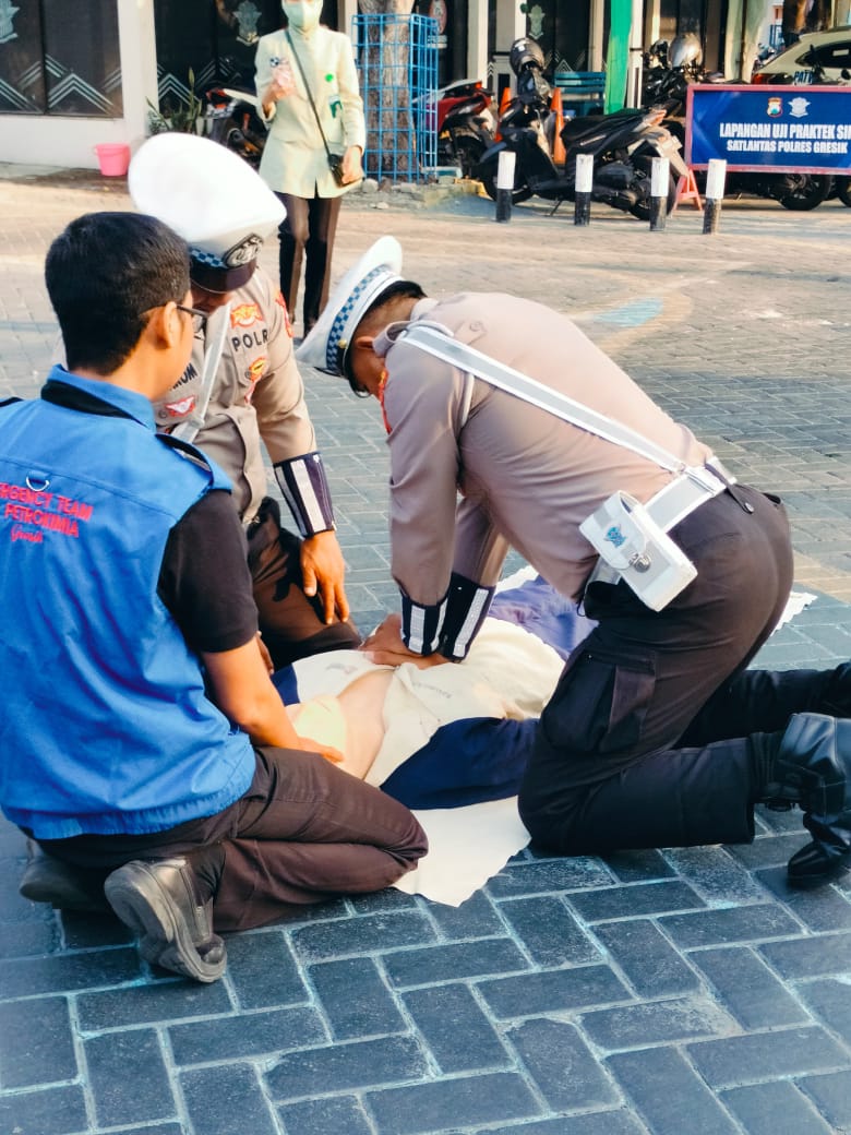 Dalam kegiatan ini, anggota Satlantas mempraktikkan langsung cara memberikan pertolongan pertama kepada korban yang mensimulasikan situasi kecelakaan lalu lintas. Dengan bimbingan tim medis dari Rumah Sakit Petrokimia Gresik, beberapa anggota dilatih cara mengevaluasi kondisi korban, seperti memeriksa pernapasan dan denyut nadi, memberikan bantuan pernapasan buatan, serta melakukan penanganan awal pada luka berat.
