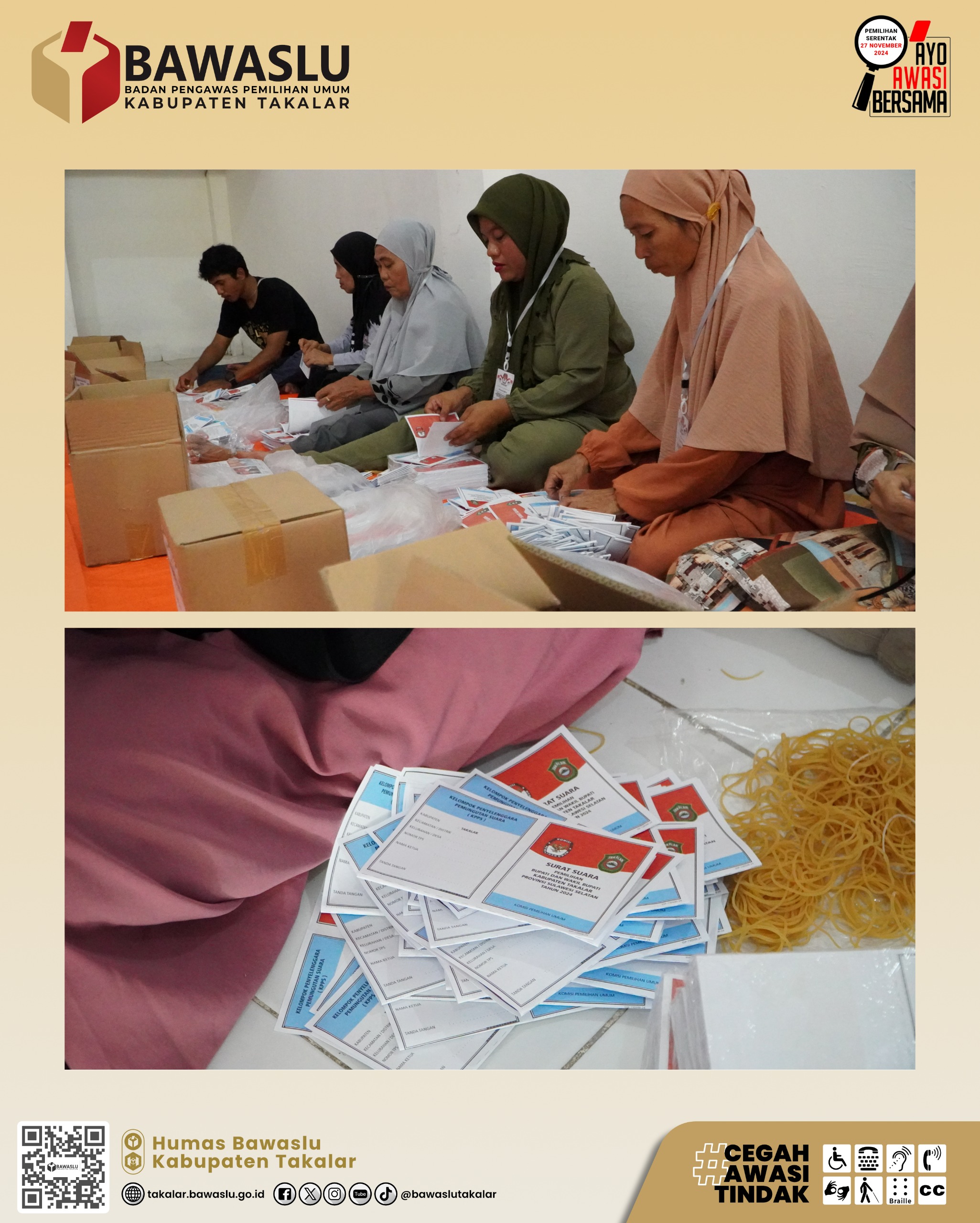 Takalar – Dalam upaya memastikan transparansi dan integritas proses pemilihan, Badan Pengawas Pemilihan Umum (Bawaslu) Takalar mengingatkan Komisi Pemilihan Umum (KPU) untuk meningkatkan melakukan sortir dan lipat surat suara sesuai Peraturan Perundang-undangan.