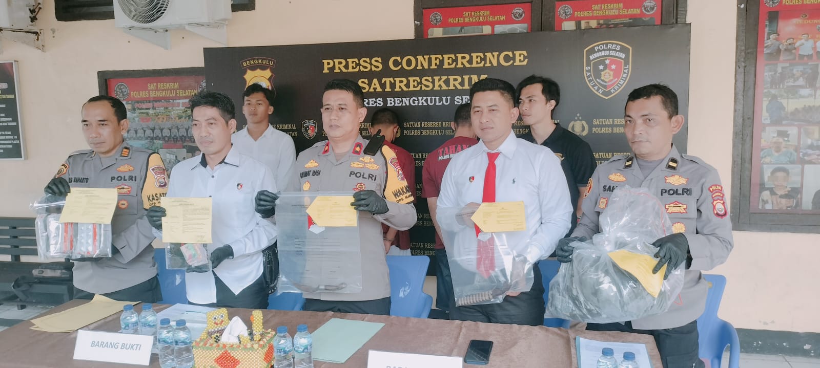 Kapolres Bengkulu selatan AKBP Florentus Situngkir, S.I.K yang di wakili Waka Kompol Rahmat Hadi Fitrianto, memimpin langsung press release yang dilaksanakan di halaman Mapolres Bengkulu Selatan, turut didampingi Kasat Reskrim bersama jajaran polres Bengkulu Selatan.
