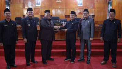 Dalam sambutannya, Wakil Bupati Yevri Sudianto menyampaikan apresiasi atas kerja sama dan sinergi yang telah terbangun antara Eksekutif dan Legislatif, hingga menghasilkan kesepakatan terhadap 2(Dua)Raperda Strategis tersebut.