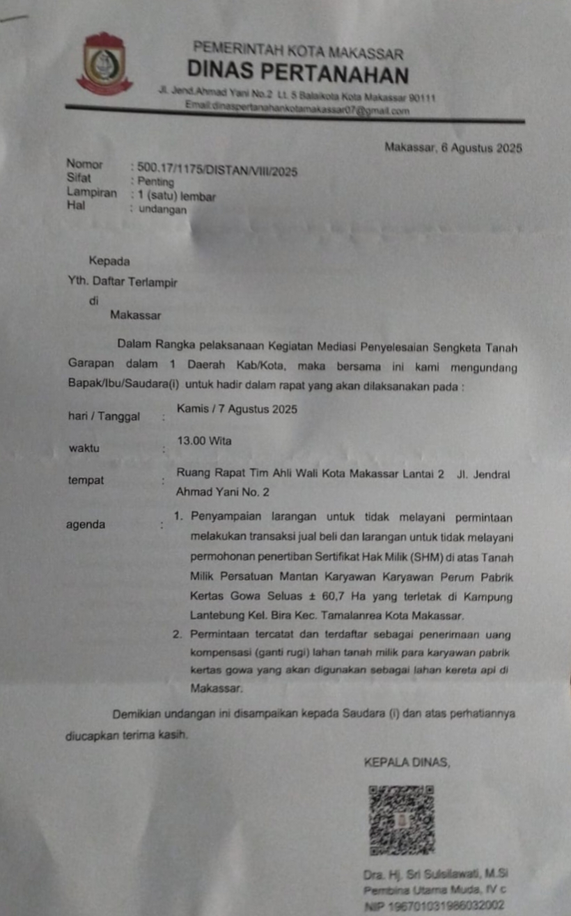 Permasalahan ganti rugi lahan rel kereta api di kec. Biringkanaya dan Kec. Tamalanrea. Yang digugat di pengadilan negeri Makassar oleh Pemangku Adat Kesultanan Kerajaan Kembar Islam Gowa Tallo Makassar pada 21 Agustus 2024.