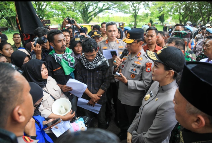 “Penyampaian aspirasi adalah hak setiap warga negara. Polri hadir untuk memastikan keamanan, serta menjadi jembatan agar suara masyarakat bisa tersampaikan dengan baik,” ujar Kapolda Malut di hadapan massa.