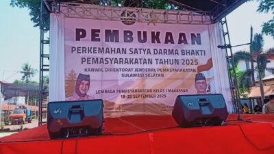 Makassar,lintasljurnaltipikor.com-“Lembaga Pemasyarakatan Kelas 1 Makassar Kantor wilayah Ditektoral Jenderal Pemasyarakatan Sulawesi Selatan Resmi membuka Perkemahan Farma Bakti tahun 2025 yang di jafwalkan Selama 3 hari terhitung sejak tanggal.17 hingga dengan Tanggal 20 September 2025