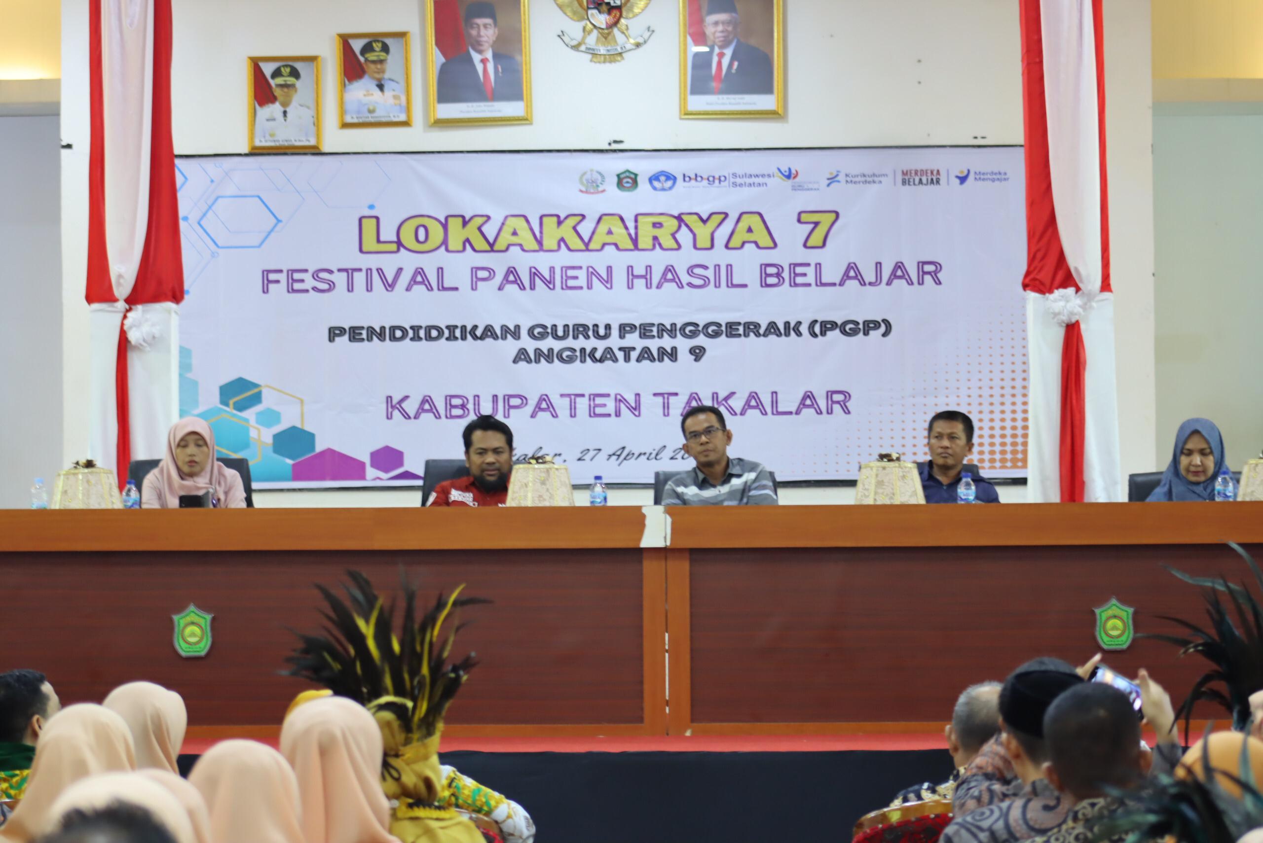 Pendidikan Guru Penggerak (PGP) Kabupaten Takalar menggelar acara Lokakarya ke-7 Festival Panen Hasil Belajar dan di buka secara resmi oleh PJ Bupati Takalar, Dr. Setiawan Aswad, M.Dev.,Plg, di Ruang Pola kantor bupati Takalar.