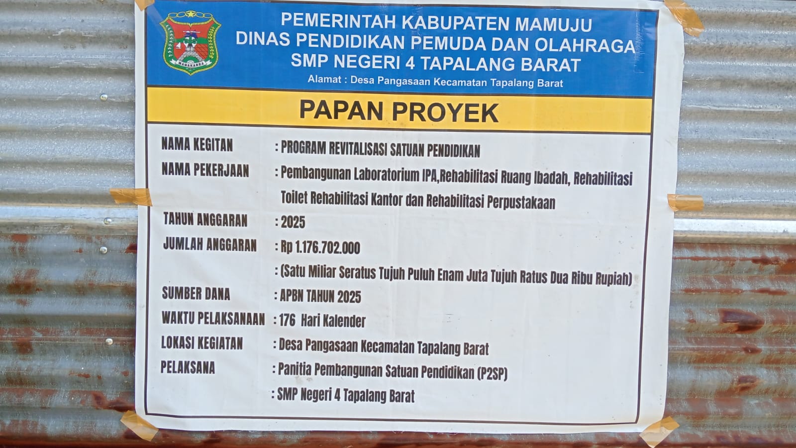 Seperti yang terjadi di SMP Negeri 4 Tappalang Barat, yang mendapatkan dana rehabilitasi APBN Tahun 2025 senilai Rp. 1. 176.702.000,-. Dimana pantauan tim media di sekolah tersebut, menggunakan bahan yang tidak layak pakai. Hal tersebut terkesan dilakukan dengan sengaja, demi mendapatkan keuntungan yang lebih banyak