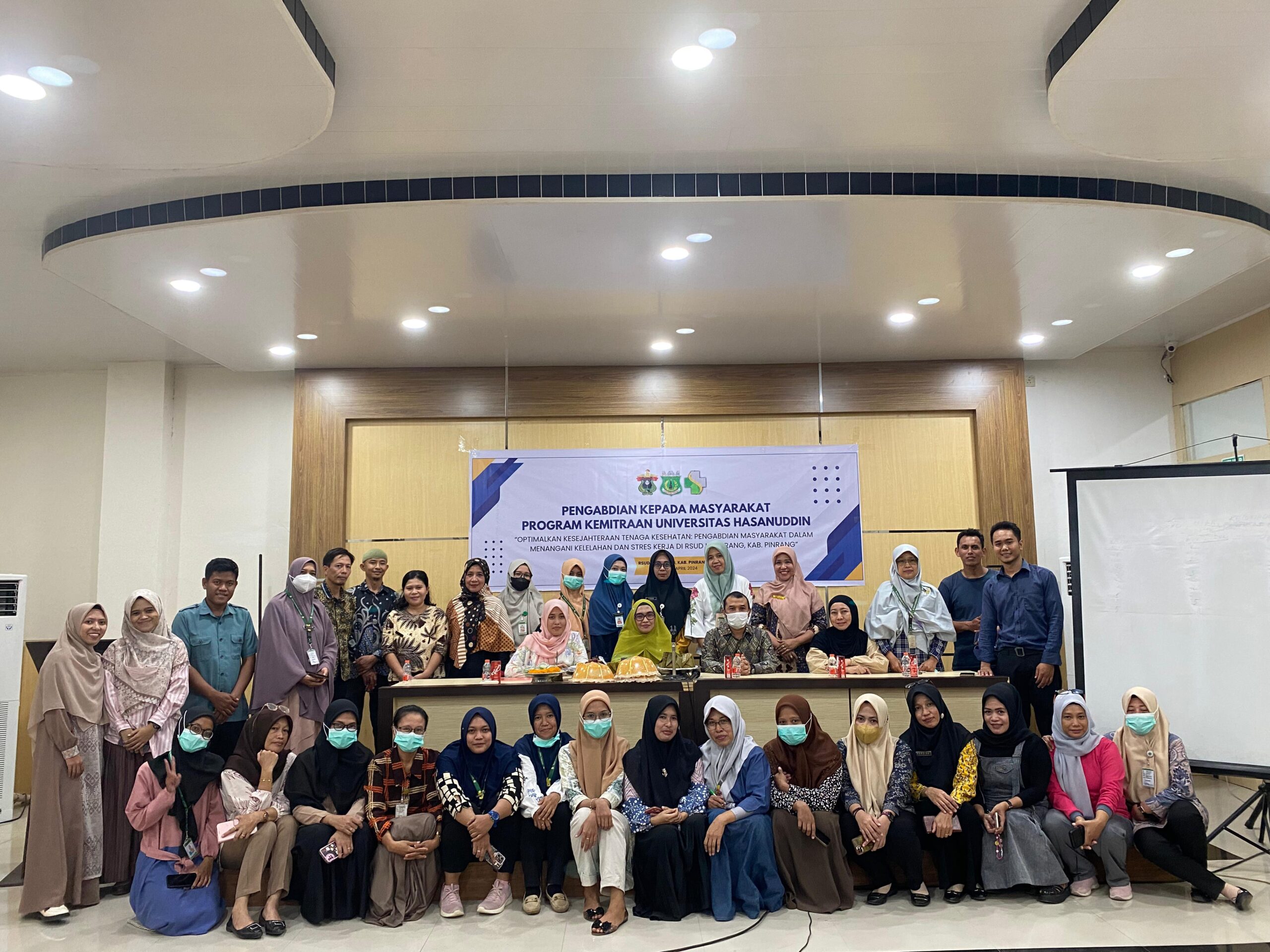 Kegiatan PkM ini dihadiri dan dibuka oleh Direktur RSUD Lasinrang yang diwakilkan kepada Kepala Bidang Pengembangan Pelayanan dan SDM, ibu Hj. Sunarsi, S.Kep.Ns. Turut hadir pula, tim PkM Unhas yakni Prof. Dr. Lalu Muhammad Saleh, SKM.,M.Kes dan Istiana Tadjuddin, S.Psi.,M.Psi,Psikolog. Adapun peserta yang hadir berjumlah 35 orang yang terdiri dari Perawat dan Petugas K3RS.