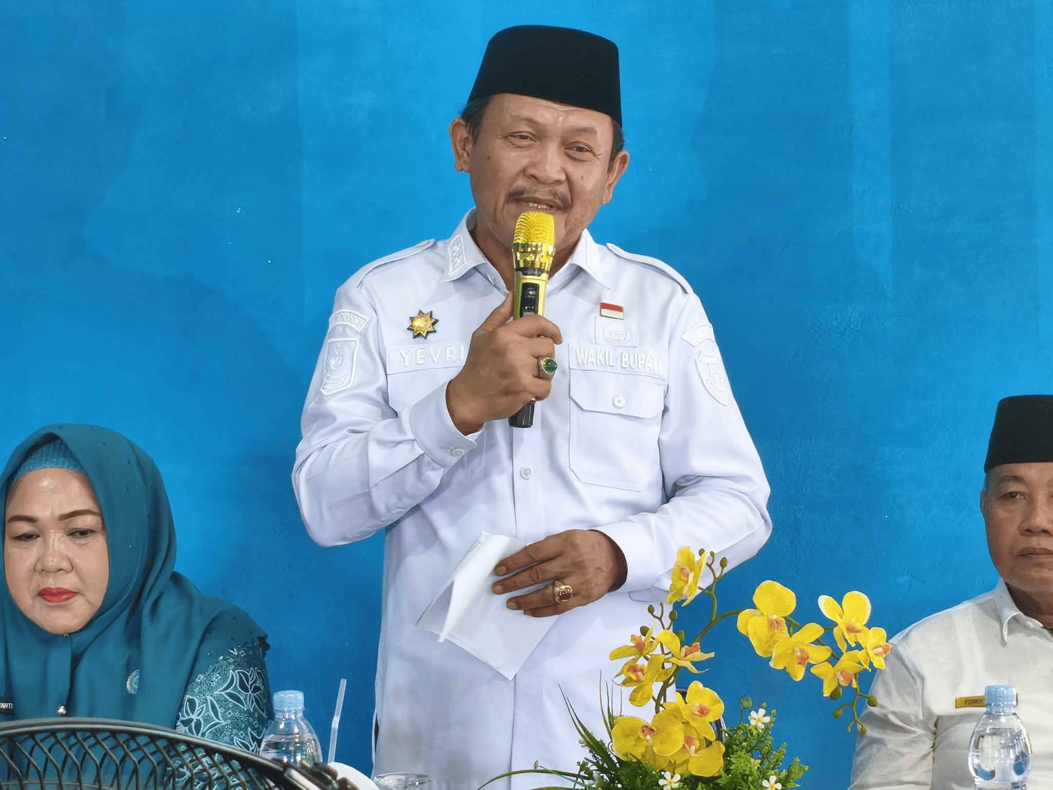 Wakil Bupati Bengkulu Selatan Yevri Sudianto menghadiri kegiatan Launching Genting (Gerakan Orang Tua Asuh Cegah Stunting)dilaksanakan di Balai KB Kecamatan Pasar Manna Kabupaten Bengkulu Selatan,Rabu(29/10/2025).Kegiatan ini juga dihadiri oleh Ketua TP-PKK Bengkulu Selatan, Kepala Dinas PPKB3PA, Camat Pasar Manna, Kepala KUA, serta Undangan lainnya.