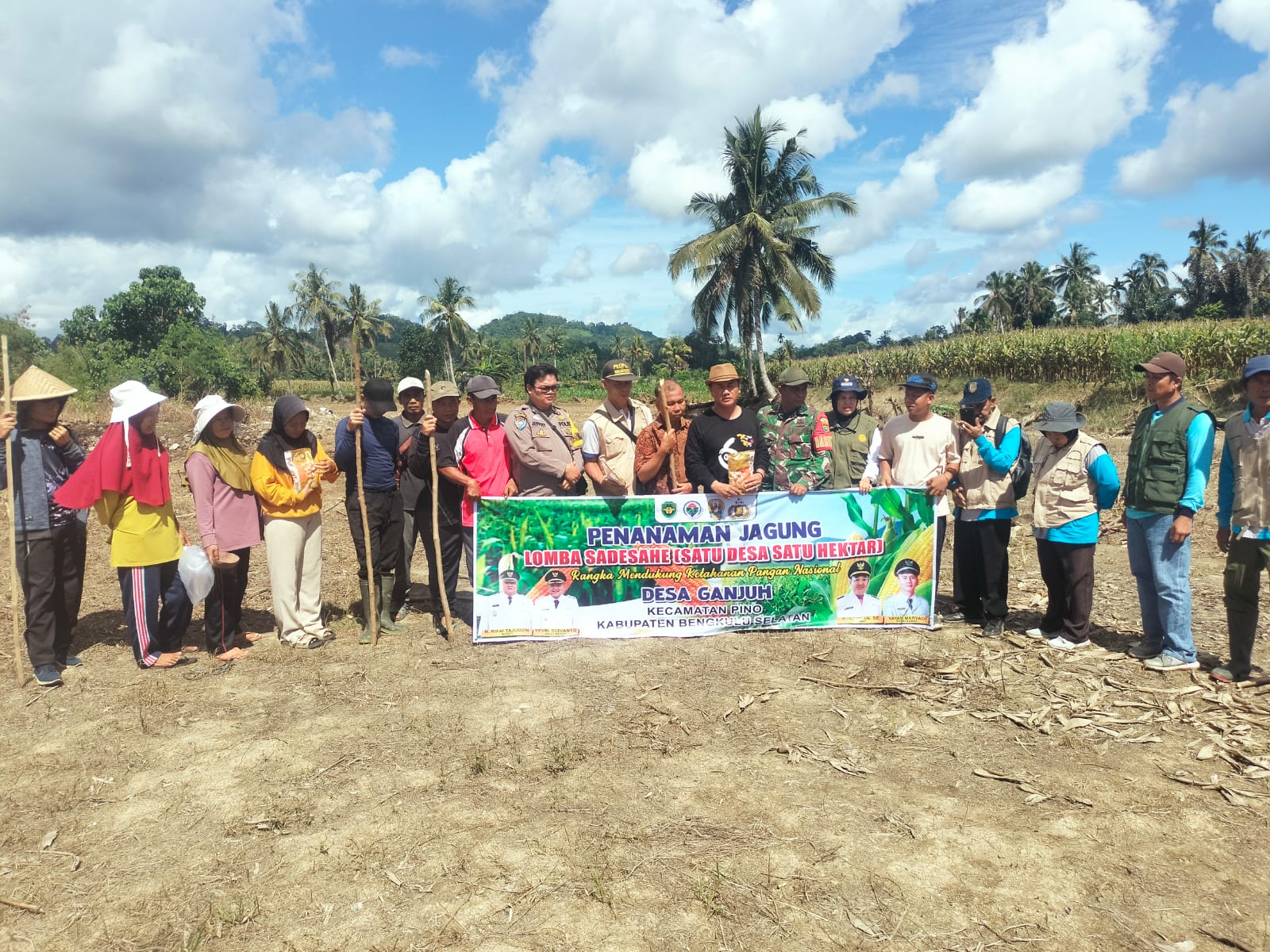 Bengkulu Selatan. Lintas Jurnal Tipikor—Pemdes Desa Ganjuh Kecamatan Pino Kabupaten Bengkulu Selatan mengadakan Penanaman Jagung/Lomba Sadesahe Satu Desa Satu Hektar dalam Rangka Mendukung Ketahanan Pangan Nasional.Hari Kamis(30/10/2025).