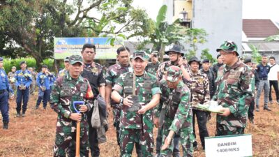 Kodim 1408/Mks melaksanakan Gerakan Penanaman Pohon Buah Dan Tanaman Keras Dalam Rangka Hari Ketahanan Pangan Dan Hari Bumi di area lahan milik Kodam XIV/Hsn bertempat di Jalan Goa Ria, Kelurahan Sudiang, Kecamatan Biringkanya Kota Makassar, Sabtu (04/05/2024). Gerakan penanaman pohon bersama ini dipimpin langsung oleh Komandan Kodim 1408/Mks (Kolonel Inf Lizardo Gumay, S.H, MM, M.I.Pol) bersama Kapolrestabes Makassar dan Pelabuhan,