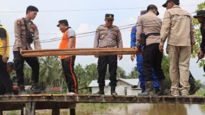 Polres Tanjung Jabung Barat (Tanjab Barat) menunjukkan kepedulian nyata dengan merenovasi jembatan vital di Desa Kuala Baru, Kecamatan Seberang Kota, Jum’at 12 Des 2025