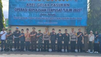 Bengkulu Selatan. Lintas Jurnal Tipikor–-Wakil Bupati Bengkulu Selatan Yevri Sudianto mengikuti Apel Gelar Pasukan Persiapan Pengamanan Perayaan Natal Tahun 2025 dan Tahun Baru 2026 di Lapangan Polres Bengkulu Selatan.Jum’at(19/12/2025).
