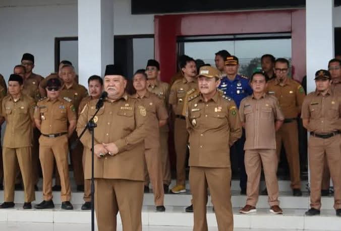 Bupati Bengkulu Selatan H. Rifa’i Tajuddin,S.Sos bersama Wakil Bupati Bengkulu Selatan Yevri Sudianto mengikuti Apel Perdana Tahun 2026.Senin(05/01/2026)di Halaman Lapangan Kantor Bupati,Apel ini menjadi Momentum Awal penguatan komitmen dan semangat kerja seluruh jajaran Pemerintah Kabupaten Bengkulu Selatan di awal Tahun.