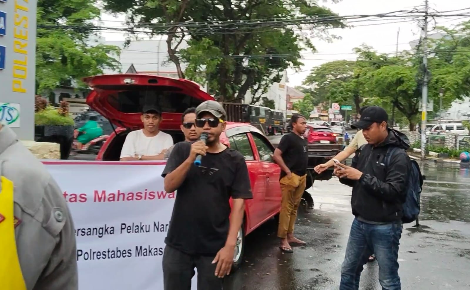 Dalam aksinya, massa mahasiswa menyampaikan bahwa sebelumnya aparat kepolisian telah mengamankan tiga orang terduga pelaku yakni Al, As, dan Wm di wilayah Jalan Tidung, Kota Makassar, dengan barang bukti satu paket liquid sintetis. Namun berdasarkan informasi yang beredar di masyarakat, ketiga orang tersebut diduga dilepaskan setelah adanya permintaan pembayaran sejumlah uang oleh oknum aparat kepolisian.