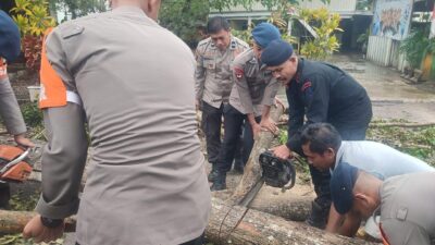 “Pohon berukuran cukup besar itu berhasil dipindahkan dari badan jalan dengan cara dipotong-potong menggunakan 2 (dua) unit mesin Chainsaw oleh Tim SAR Brimob Bone yang dibantu oleh personel Polsek Palakka dan masyarakat sekitar,” imbuhnya.