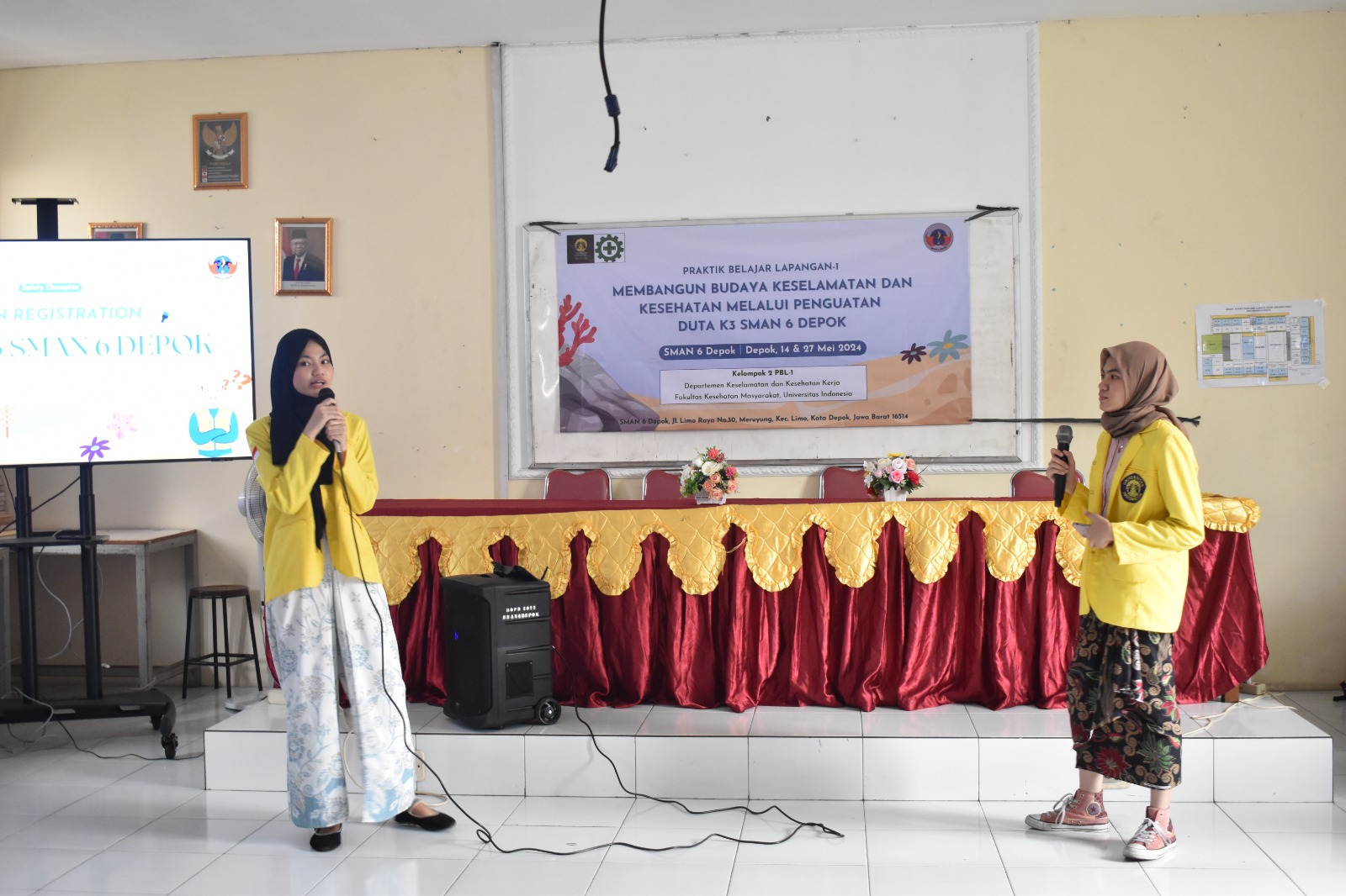 Program Studi S1 K3 dari kelompok 2 angkatan 2021 Fakultas Kesehatan Masyarakat, Universitas Indonesia menyelenggarakan rangkaian kegiatan edukasi dan peningkatan awareness siswa-siswi di SMAN 6 Depok dengan tema “Membangun Budaya Keselamatan dan Kesehatan melalui Penguatan duta K3 di SMAN 6 Depok”. Kegiatan ini akan berlangsung selama 2 hari, yaitu pada tanggal 14 dan 27 Mei 2024, dengan peserta sebanyak 50 siswa/i MPK-OSIS SMAN 6 Depok.