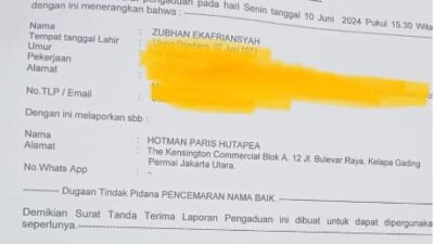 Menurut surat tanda penerimaan pengaduan yang di terima , zudhan ekafriansyah, perwakilan aliansih suku Makassar melaporkan hotman paris hutapea ,10 juni, 2024. Pukul/15./30/wita,